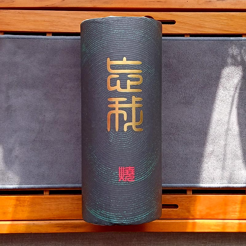 Чай спрессован в килограммовую колонну, так называемый "столб дракона", обернут в упаковочную бумагу.