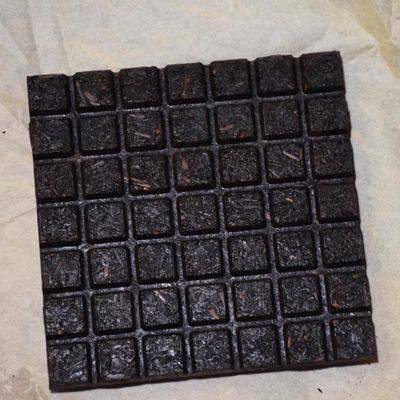 Чай спрессован в виде плитки-«шоколадки», состоящей из 49 долек-сегментов. Вес одного маленького квадратика – 4-5 грамм.
