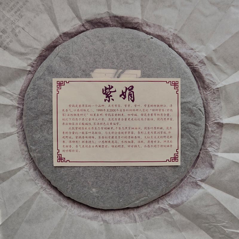 Цзыцзюань — это разновидность чайного дерева, для которой характерны пурпурные чайные листья, пурпурные почки, пурпурная листва и пурпурные стебли, свежий аромат и уникальный, ни с чем не сравнимый вкус. Результаты исследования «Биологически активных веществ особого пурпурного чая (Цзыцзюань)», проведенного еще в 1999-2000 годах, показали, что содержание таких веществ, как флавоноиды, кофеин, цинк и антоцианы, в чае Цзыцзюань выше, чем в других крупнолистовых пуэрах, причем содержание антоцианов превышает их в несколько раз. Благодаря богатому внутреннему составу, цвет настоя — бледно-желтый с пурпурным оттенком.