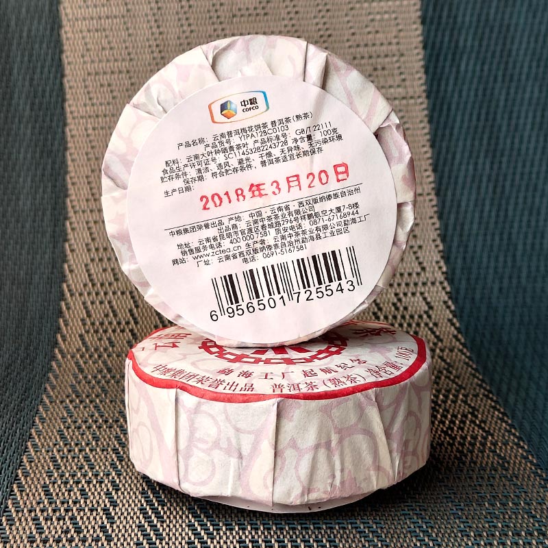 Для изготовления этого чая отобрано высококачественное выдержанное сырьё из высокогорных районов Мэнхай (Сишуанбаньна, Юньнань), прошедшее ферментацию. Использована старинная рецептура с улучшенным сырьём. Уникальная и изящная форма: спрессован вручную по древней технологии. На лицевой стороне — иероглиф "Чай" (茶), на оборотной — узор "цветок сливы" (梅花). Каждый блин упакован в рисовую бумагу.