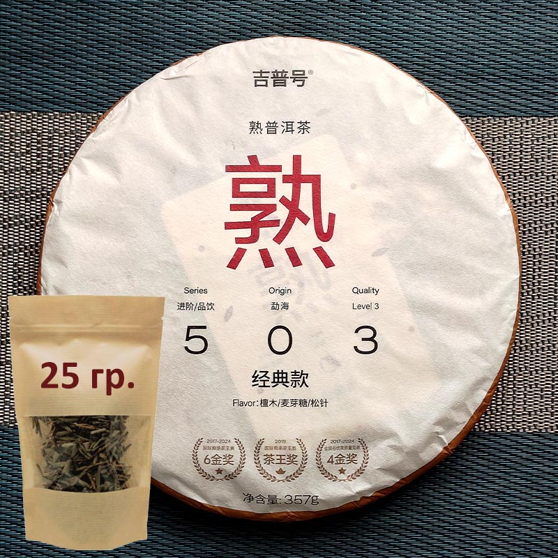Шу пуэр Цзипу Хао 503 - это флагманский продукт бренда. Накопив 5 лет выдержки (с 2012 по 2017 год), чай "503" серии покорил каждого профессионального судью. За 9 лет он завоевал 12 золотых медалей, а в 2019 году получил Гран-при (награду «Чайный король») в категории шу пуэров. "503" неизменно демонстрирует силу и привлекательность юньнаньского пуэра.