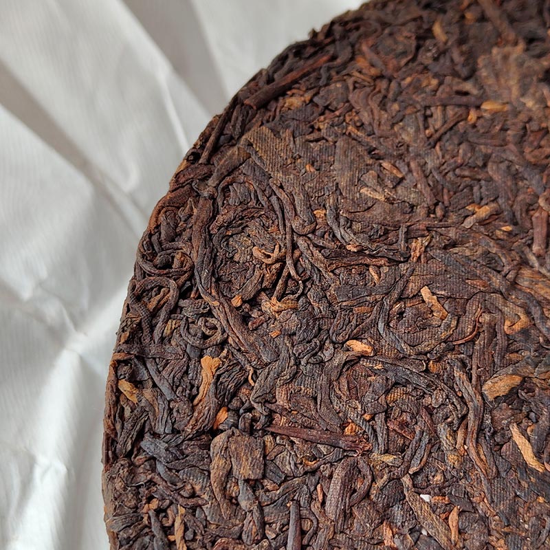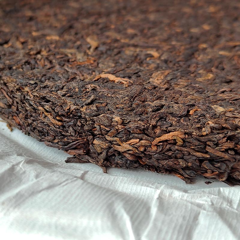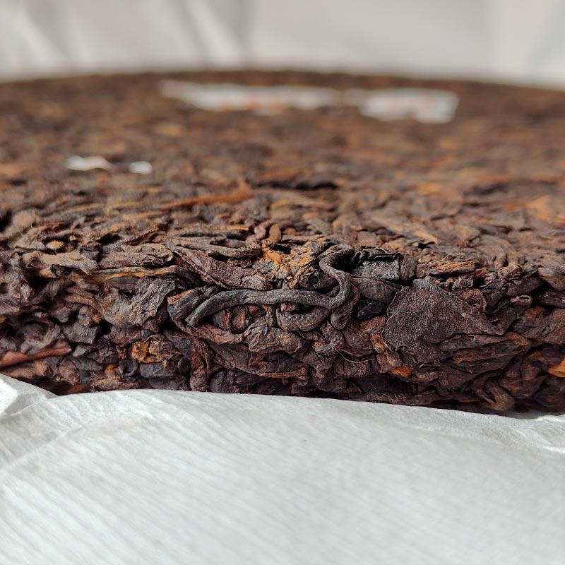 Сырье было спрессовано в блин с использованием деревянной формы из камфорного дерева (придаёт чаю тонкий камфорный аромат). Форма блина круглая и ровная, что позволяет полностью сохранить внутренние качества чая. Степень прессовки оптимальная (не слишком плотная, не слишком рыхлая), что дает чаю хорошо контактировать с воздухом для выдержки и что делает его удобным для откалывания и заваривания.