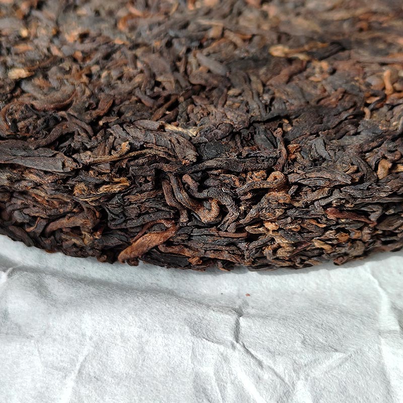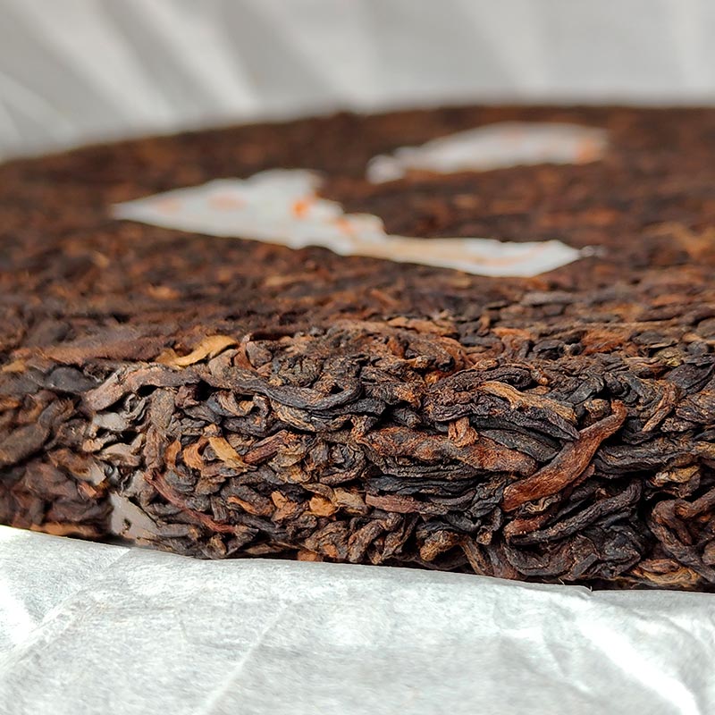 Сырье было спрессовано в блин с использованием деревянной формы из камфорного дерева (придаёт чаю тонкий камфорный аромат). Форма блина круглая и ровная, что позволяет полностью сохранить внутренние качества чая. Степень прессовки оптимальная (не слишком плотная, не слишком рыхлая), что дает чаю хорошо контактировать с воздухом для выдержки и что делает его удобным для откалывания и заваривания.