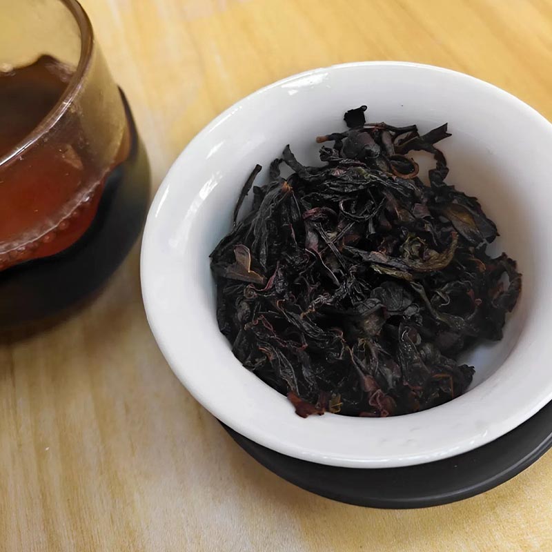 Спитой лист: однородные, прямые, живые и свежие, сочные, нежные и яркие чайные листья. Даже после большого числа проливов они остаются живыми и свежими, полностью раскрытыми, прямыми, сочными, нежными и с блеском.